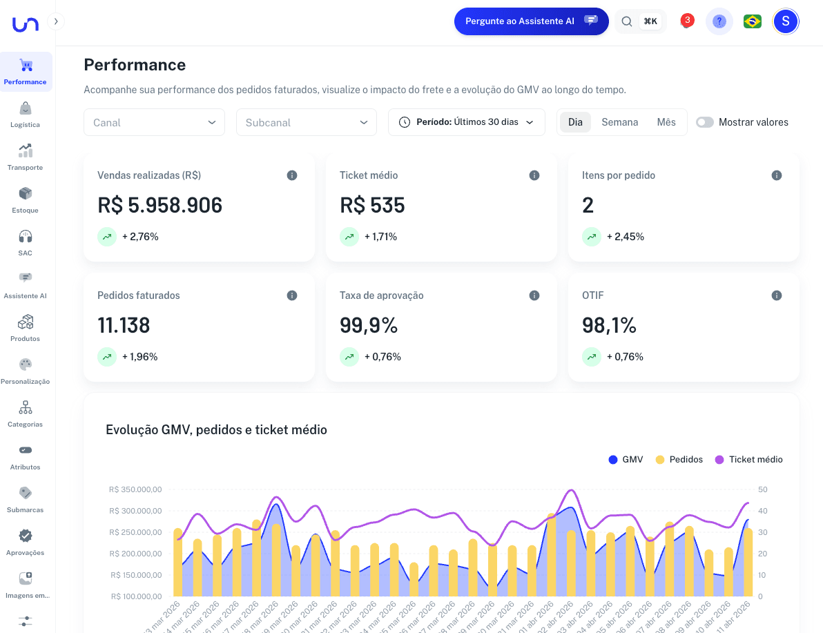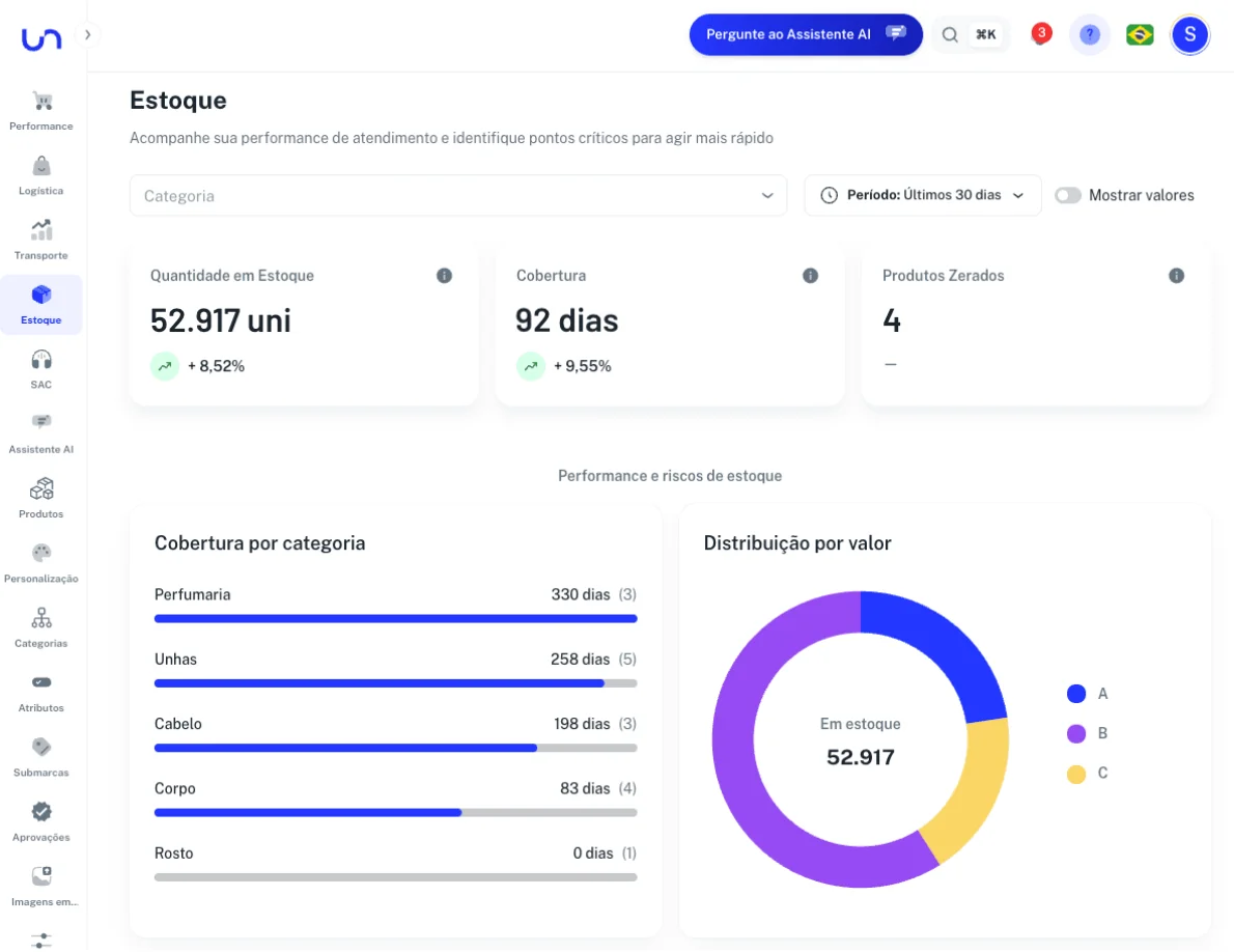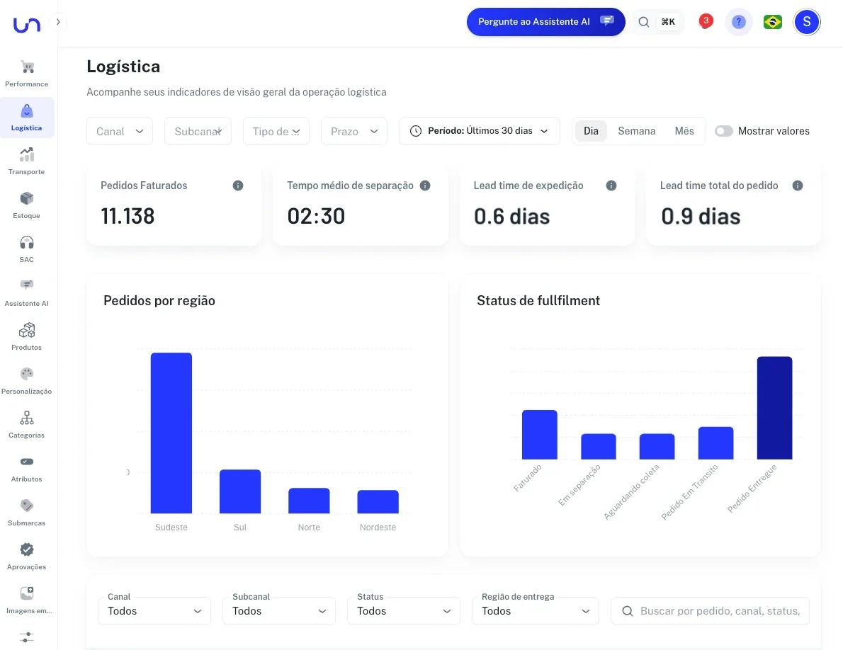 Toda a operação do e-commerce numa estrutura única e integrada. Da aprovação do pagamento à entrega e ao atendimento pós-compra, a Unlock orquestra cada etapa com tecnologia, inteligência e escala.